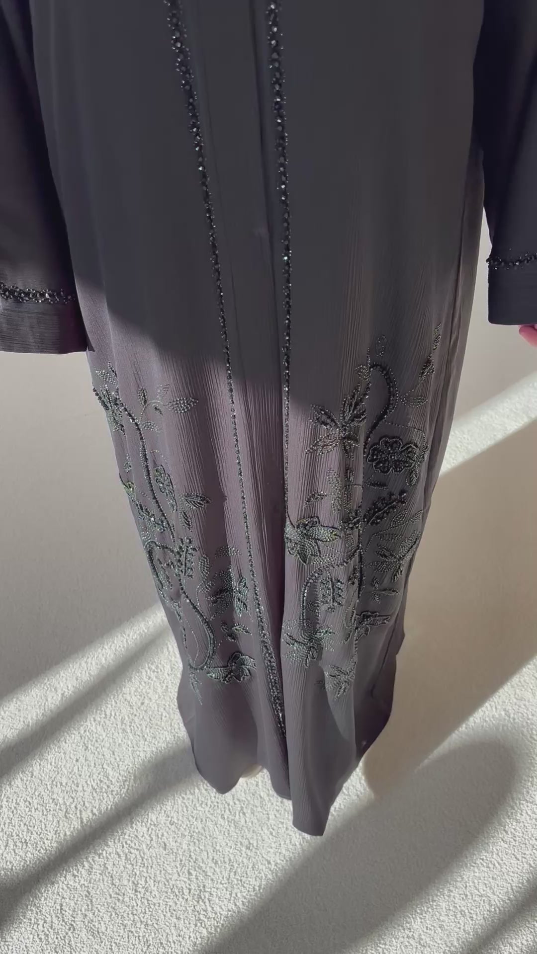 Fabriquée avec le plus grand des soins, cette magnifique abaya MADE IN DUBAI ornée de perles